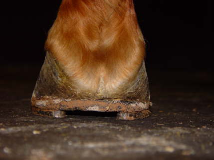 Eingerollte und gequetschte Trachten. Wegen der Quetschung arbeitet der Hufmechanismus nicht mehr, der Huf wird eng und dämpft nicht mehr.