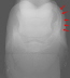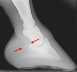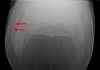 Die Aufnahme von unten macht aber deutlich, dass auch die Eckstreben betroffen sind. Wenn hier nicht durch einen entsprechenden orthopädischen Beschlag Entlastung geschaffen wird, hat die Behandlung des Strahlbeinproblems wenig Erfolg.