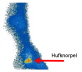 Die Aufnahme von unten, bei der das Pferd mit dem Huf auf der Kamera steht, zeigt einen eindeutigen “hot spot” über dem Strahlbein.