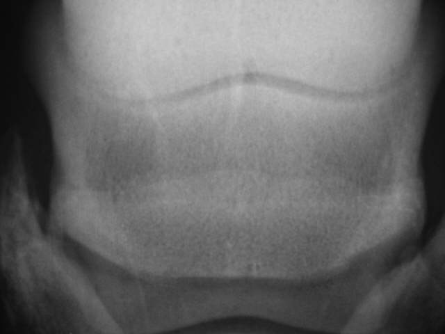 Strahlbein mit gewellter Kontur des oberen Bandansatzes