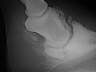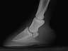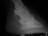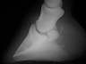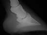Deutliche Ausziehung am oberen Strahlbeinrand und Rauhigkeit im Anheftungsbereich der tiefen Beugesehne. Einziehung im Bereich der Gefäßkanäle.